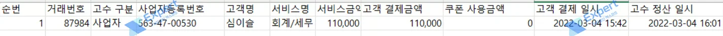 세금계산서 / 현금영수증 발행한건 따로 체크해서 알려달라고 해야 합니다.