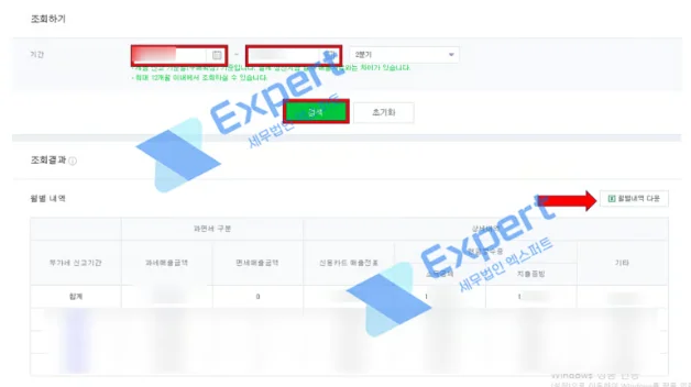 • 간이과세자*의 경우 (1월~12월 검색)