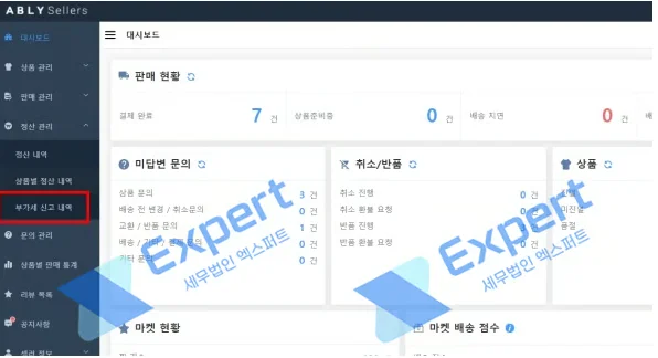 [정산 관리] - [부가세 신고 내역]