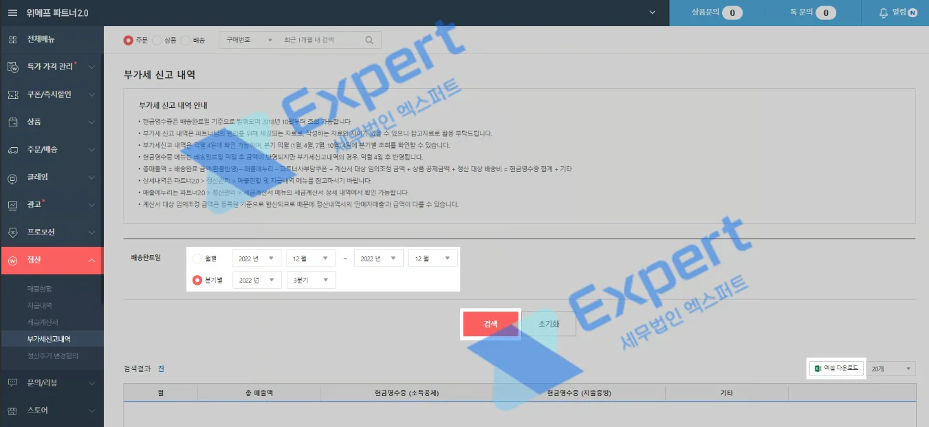 [정산] - [부가세신고내역]