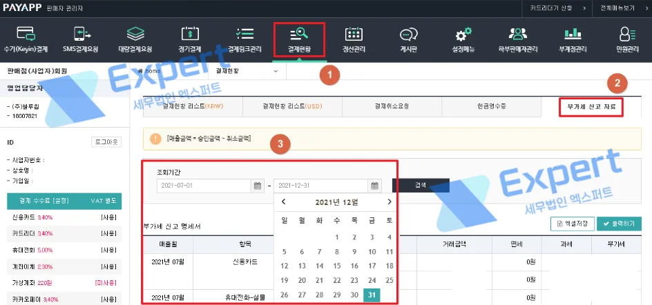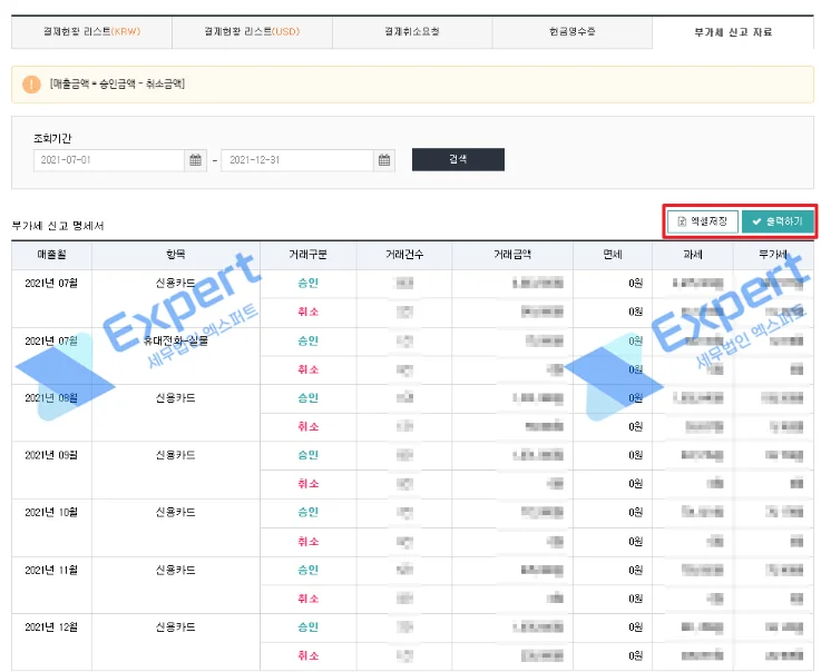 [결제현황] - [부가세 신고 자료]