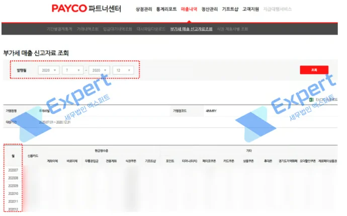 [매출 내역] - [부가세 매출 신고자료조회]