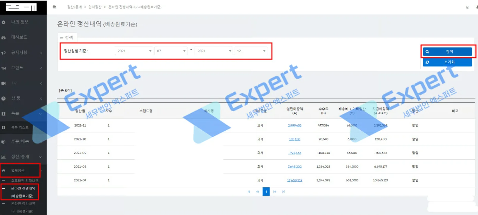 [정산/통계] - [업체정산] - [온라인진행내역(구매확정기준)]